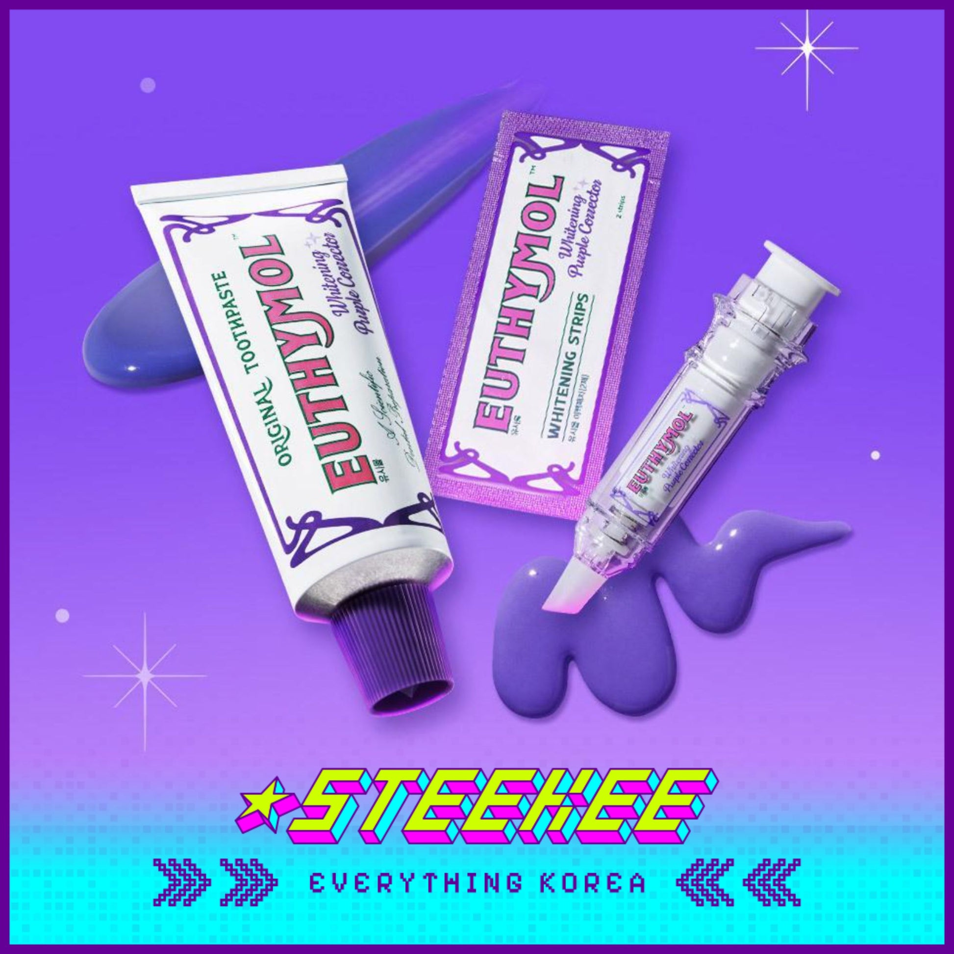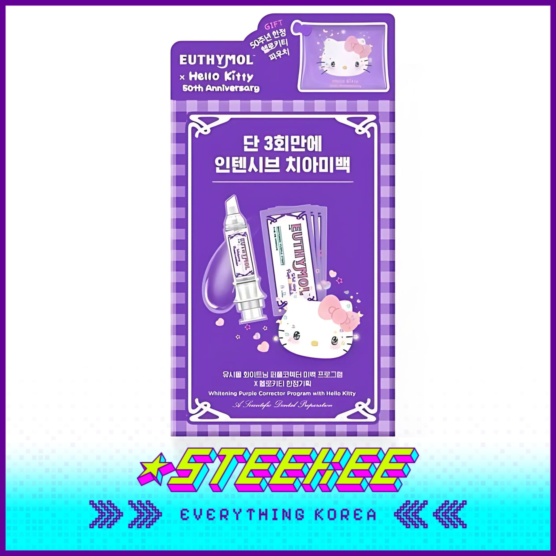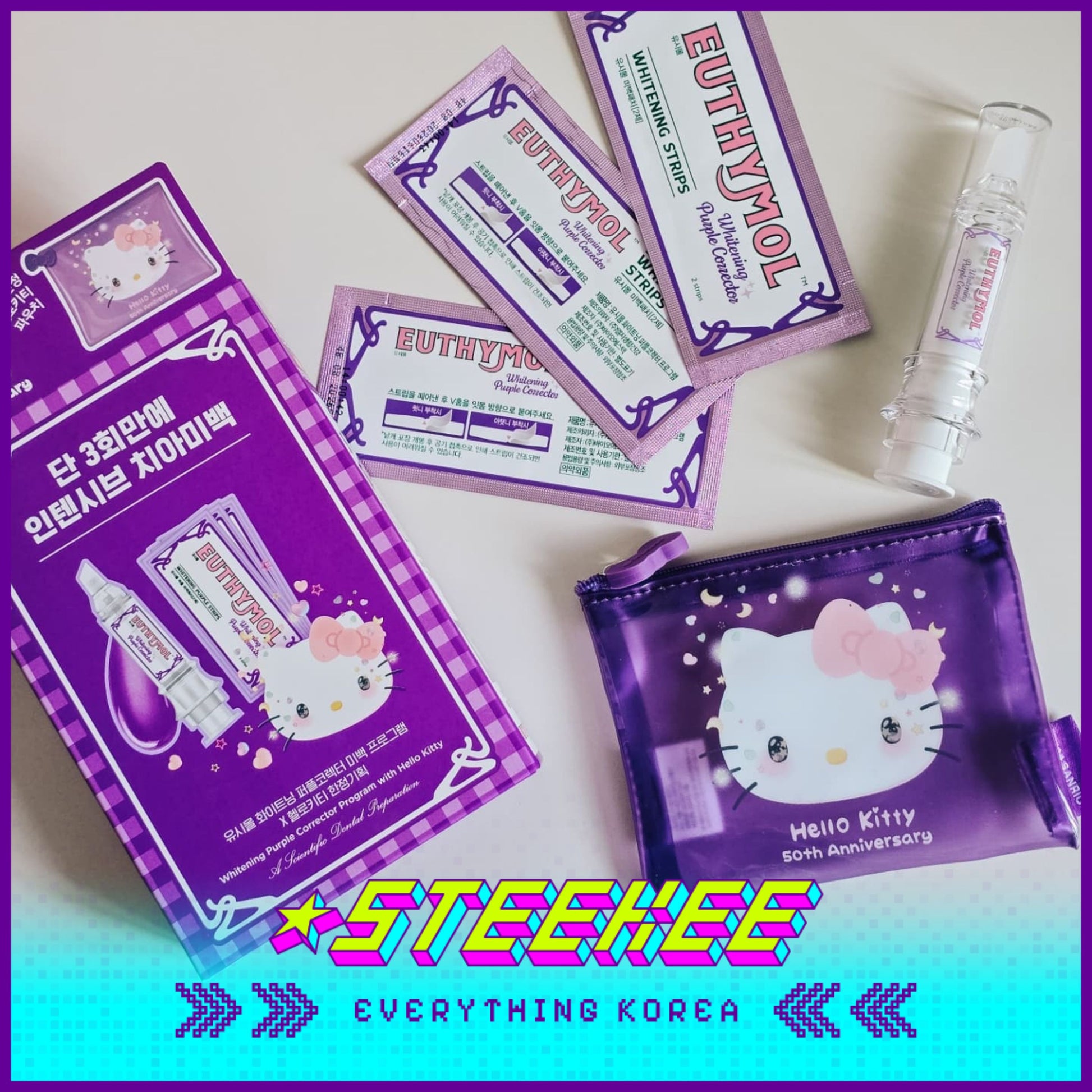Hello Kitty X Euthymol Whitening Purple Booster and Teeth Strips 3 Pieces with Pouch by Steekee Korea 2424