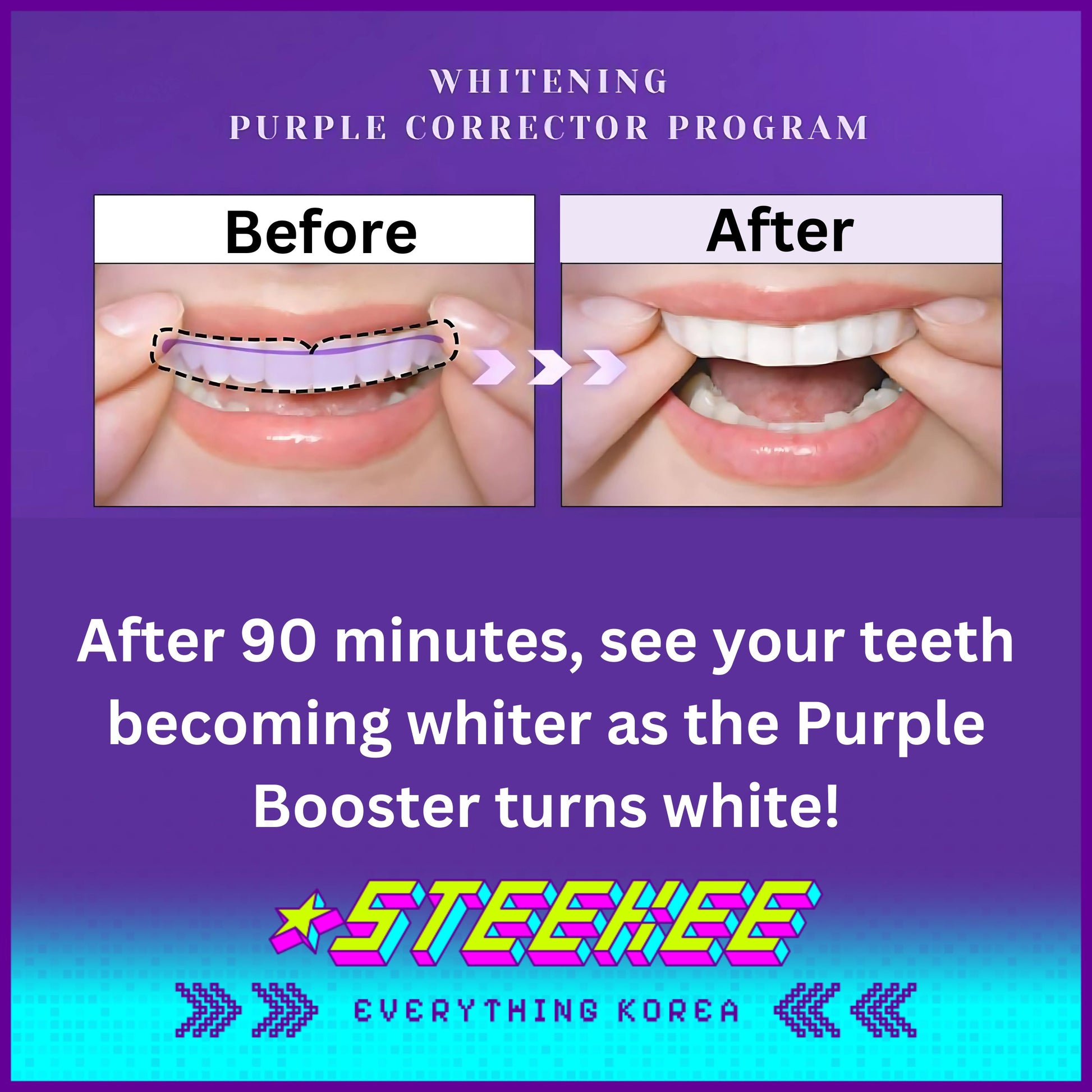 -Purple Colour-Correcting Booster Technology: Visually brightens teeth and neutralizes yellow tones for an instant whitening effect. The booster transforms to white as it works, letting you see the process.
