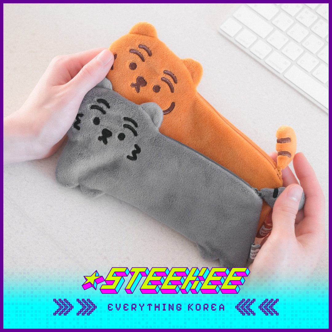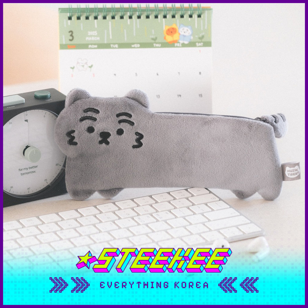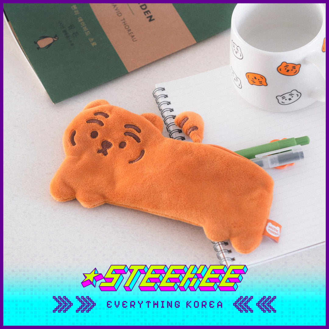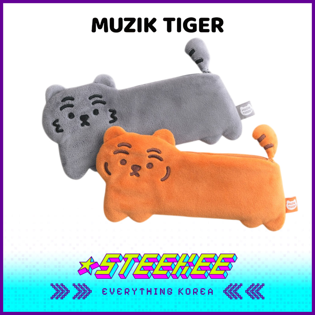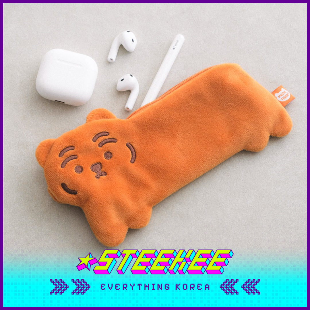 MUZIK TIGER小老虎毛绒刺绣扁平萌虎笔袋收纳袋闪奇韩国4073