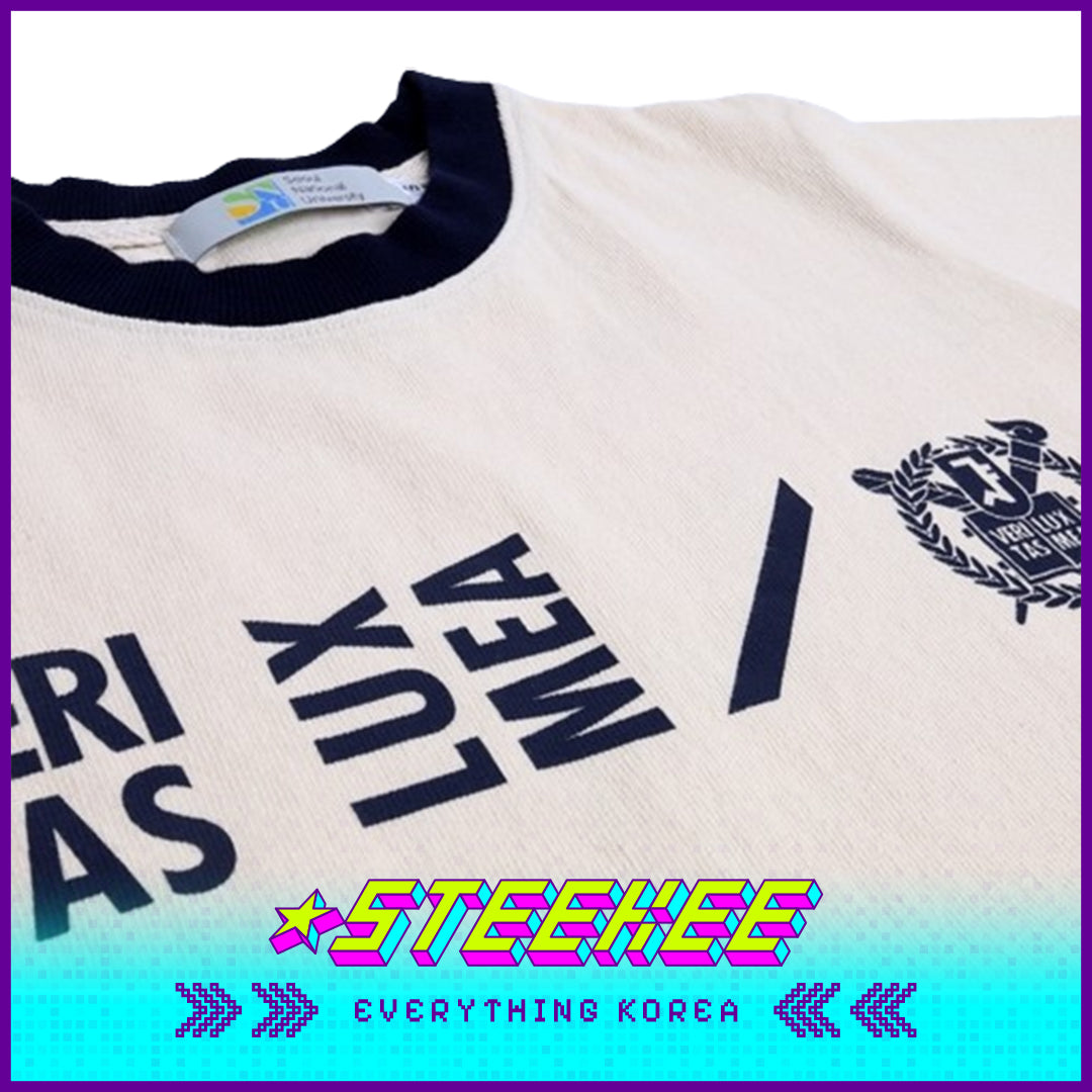 我们的儿童棉质T恤采用柔软、透气的100%有机棉,确保全天舒适。T恤印有经典的首尔大学标志和时尚图案,适合日常穿着。提供经典的奶油色和海军蓝,尺码从XS到XL,是孩子们的完美选择。