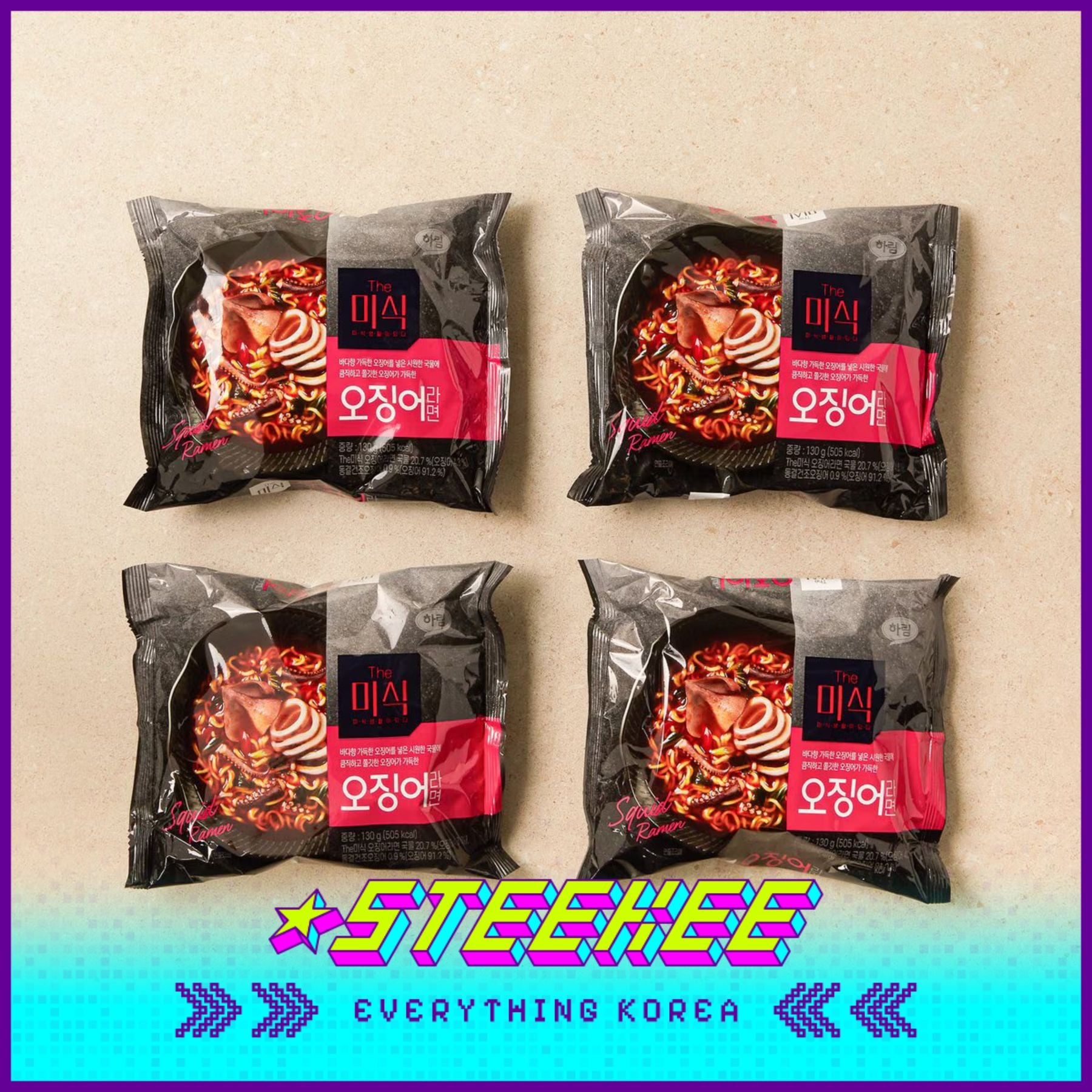 The Mishik Netflix Squid Spicy Squid Ramen Noodles 130g Set of 4 Pack by Steekee Korea 3043